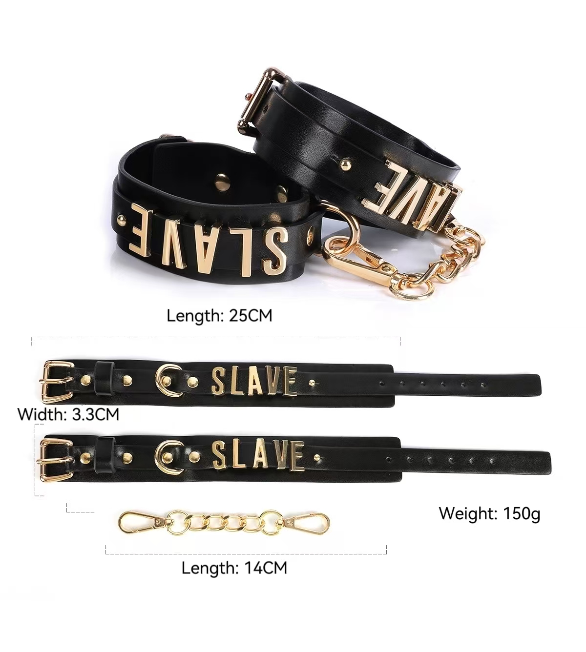 The three-piece accessory set features adjustable straps and detachable letter elements, allowing you to personalize the look and mood of your intimate moments.